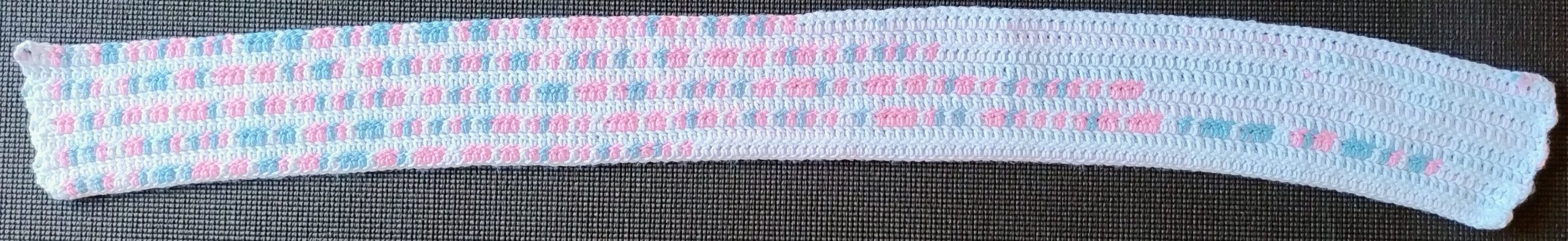 2025, Sept 13 ‘silences’ performed by Sandra Norman (crochet) presented to me at my 10 Year Tranniversary Party – image